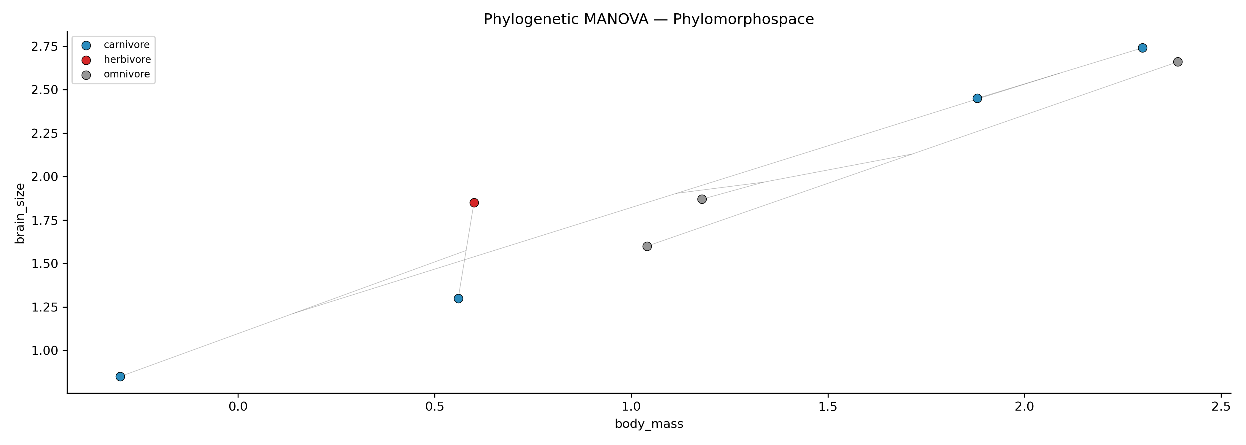 --response brain_size --predictor body_mass # PGLS regression