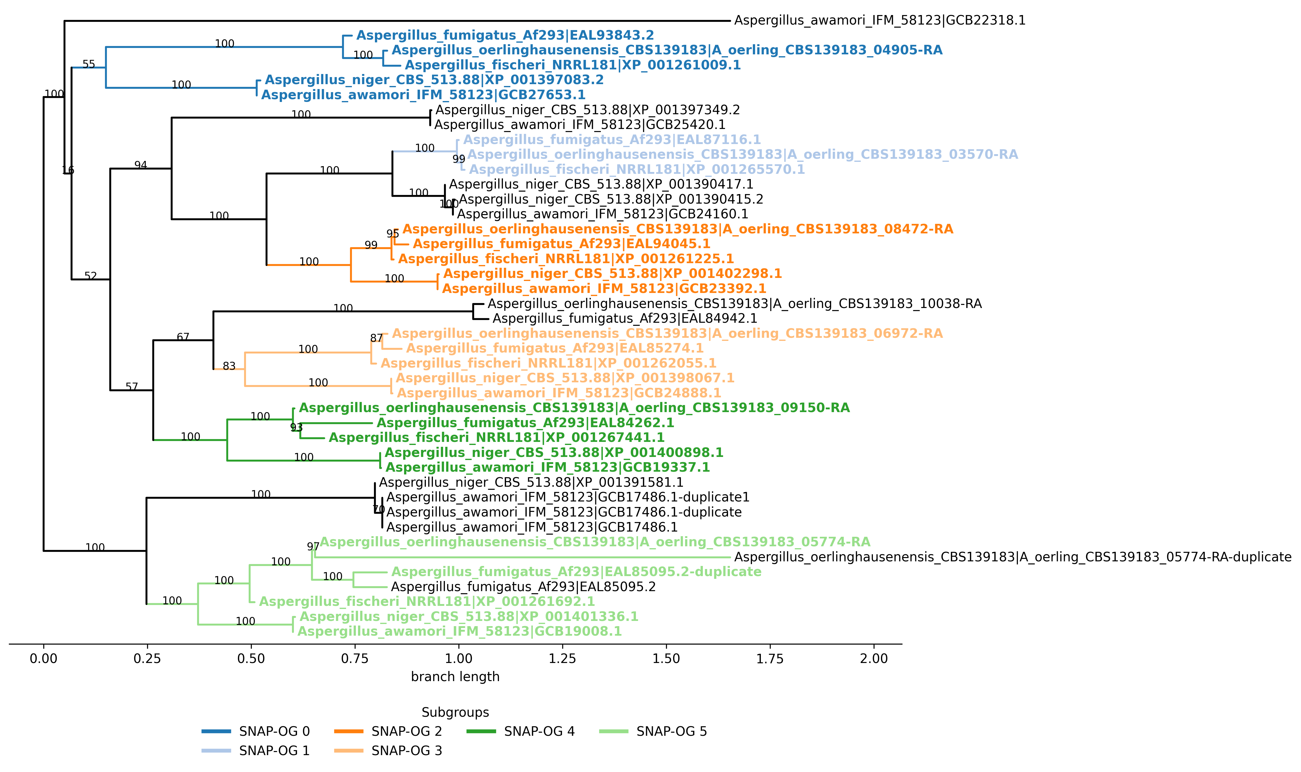 $ orthosnap -f fake_orthologous_group_of_genes.faa -t fake_orthologous_group_of_genes_tree.tre -ps